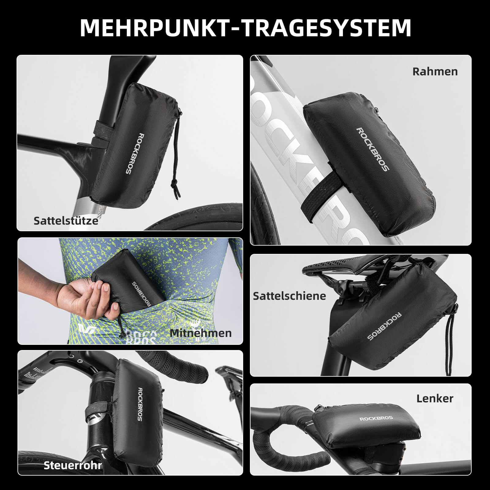 Die Oberfläche der Fahrradabdeckung besteht aus wasserabweisendem Stoff, der Ihre Gegenstände bei Regen trocken hält. Nehmen Sie wichtige Dinge mit, ohne Angst vor Wasserschäden.