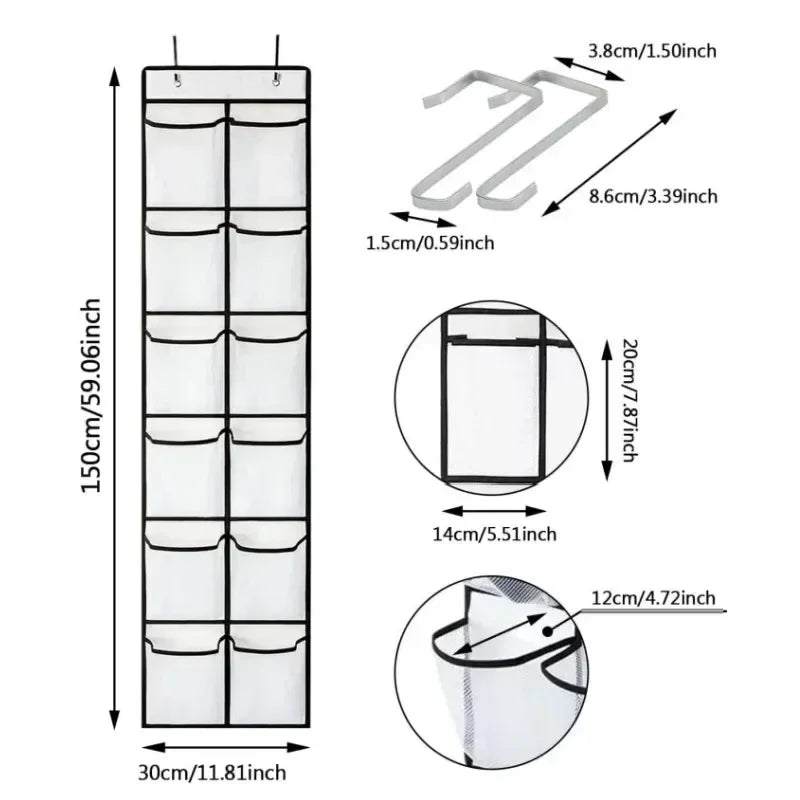 Dieser Schuh-Organizer aus nichtgewebtem Stoff bietet eine praktische Aufbewahrung für Schuhe und Kleinigkeiten. Das Material ist leicht und langlebig, ideal zum Hängen über der Tür in Schlafzimmer oder Flur. Das transparente Netzfach ermöglicht schnellen Überblick und einfachen Zugriff.