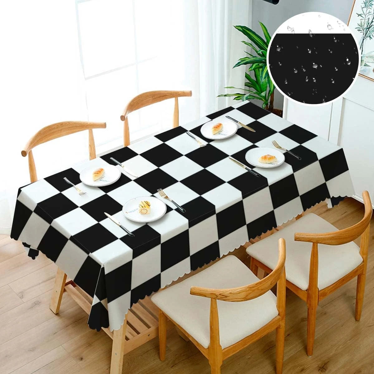 Diese rechteckige Tischdecke mit Schachbrettmuster verwandelt jeden Tisch in einen Blickfang. Sie bietet Design und Funktionalität für Alltag und Feste.