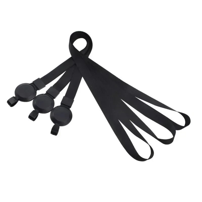 Schwarze Ausweishülle mit einziehbarer Rolle und Umhängeband