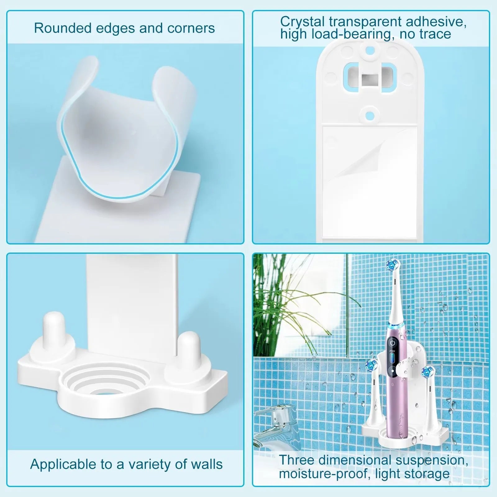 Dieser selbstklebende Zahnbürstenhalter eignet sich besonders zur Wandmontage in Badezimmer oder Küche und bietet praktische Aufbewahrung für elektrische Zahnbürstenköpfe. Er ist kompatibel mit den gängigen Modellen für elektrische Bürsten, die abnehmbare Köpfe besitzen.