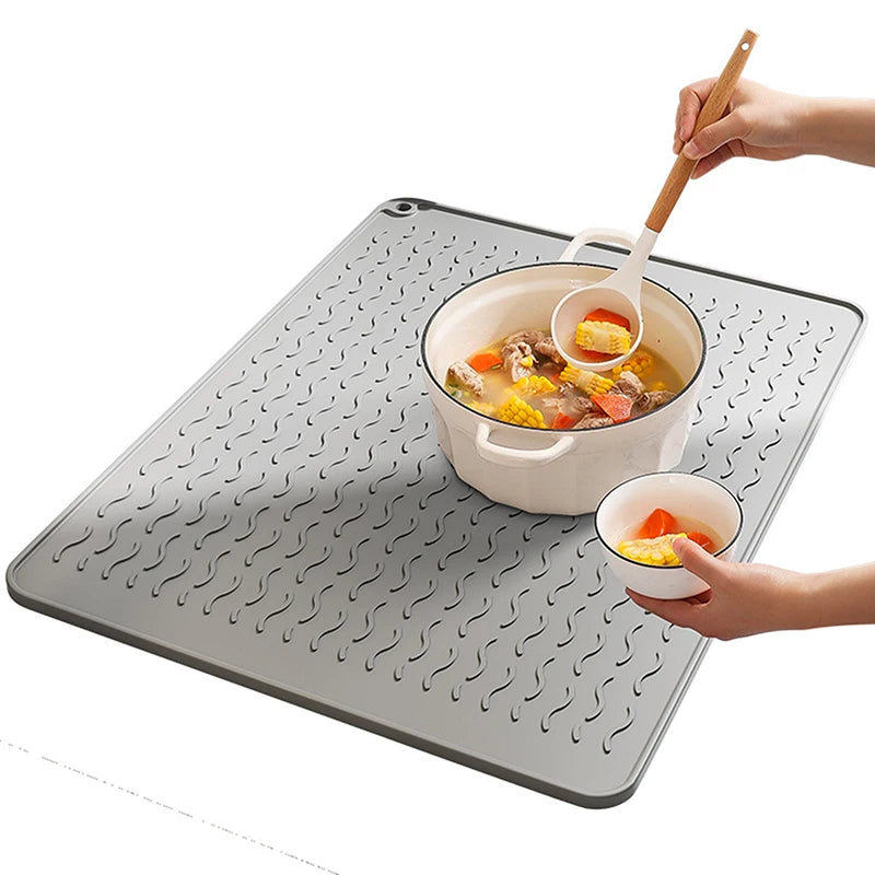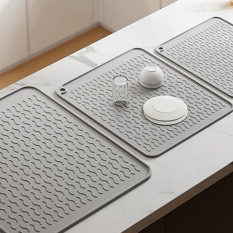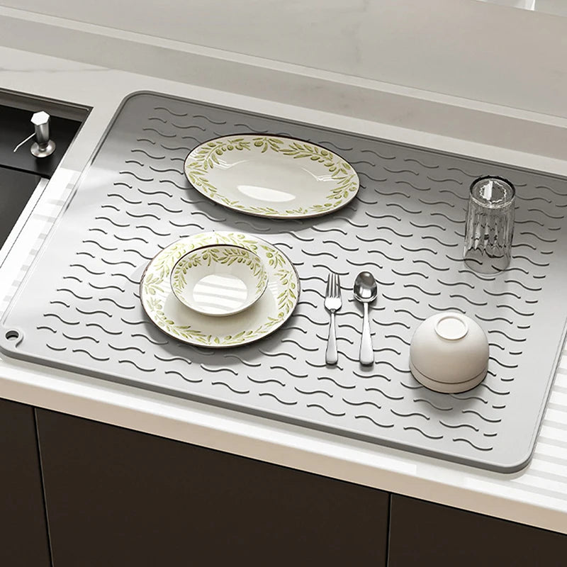 Entdecken Sie die intelligente Lösung für Ihre Küche: Unsere hochwertige Silikon-Geschirr-Trocknungsmatte. Schluss mit nassen Arbeitsplatten und unordentlichen Abtropfständern. Diese Matte bietet eine hygienische und platzsparende Möglichkeit, Ihr Geschirr nach dem Spülen zu trocknen. Dank ihres durchdachten Designs passt sie sich perfekt jeder Küchenumgebung an und sorgt für Ordnung und Sauberkeit.