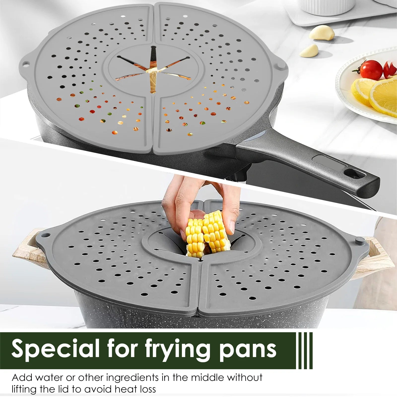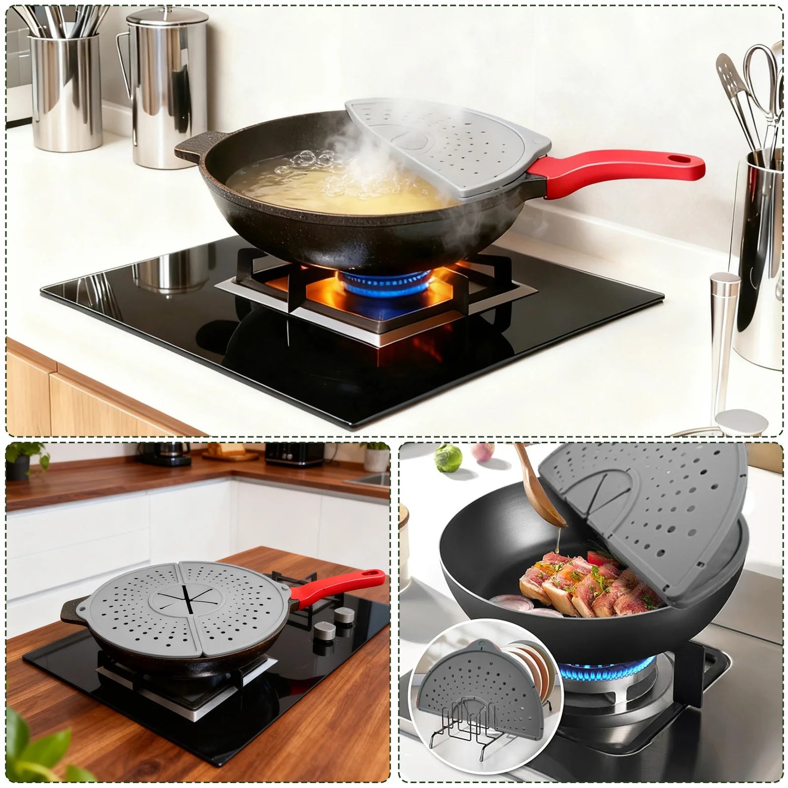 Der faltbare Spritzschutz aus hochwertigem Silikon bringt Komfort und Sauberkeit in deine Küche. Er schützt effektiv vor Fettspritzern beim Braten, verhindert ungewollte Flecken und erleichtert das Kochen erheblich.
