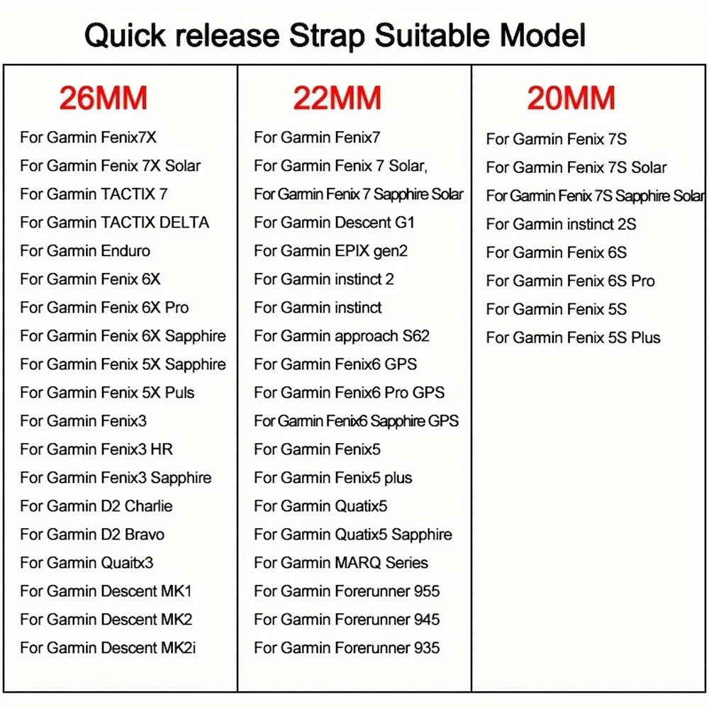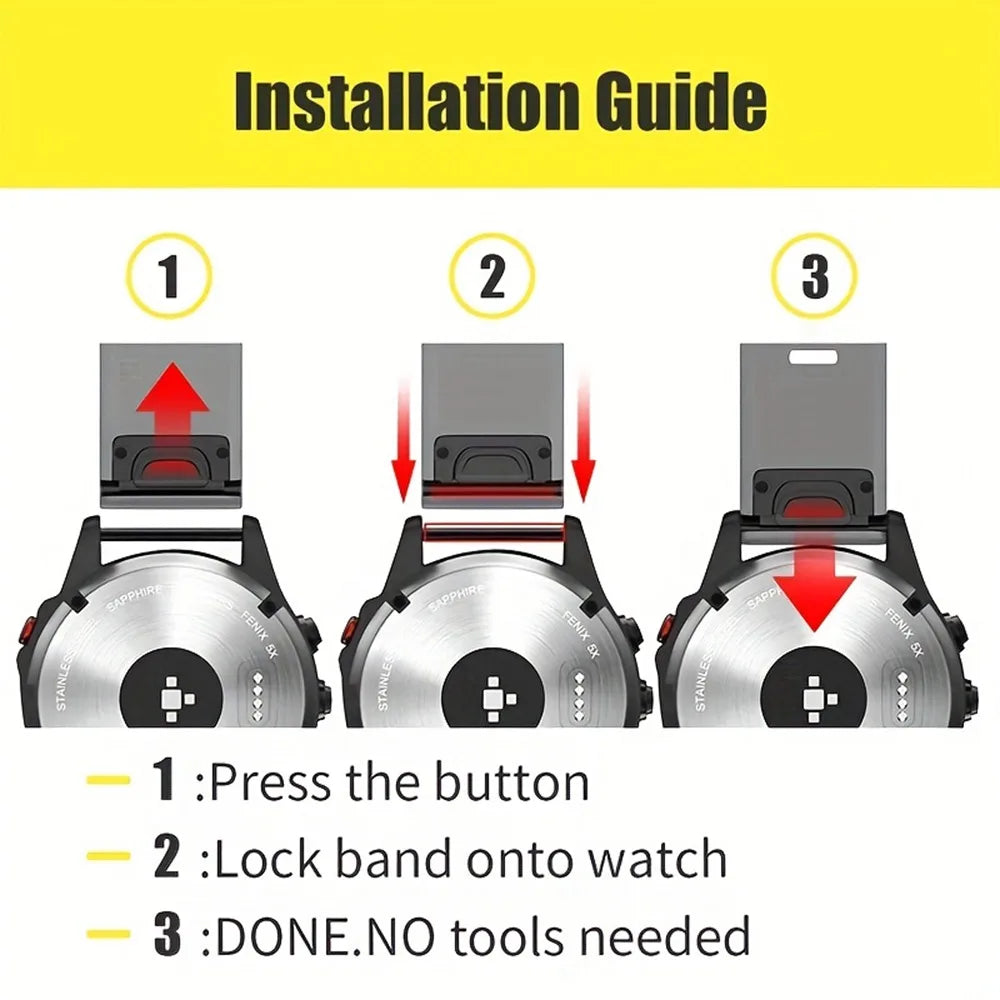 - Kompatibilität: Geeignet für QuickFit Bänder und zahlreiche Modelle wie Fenix, Forerunner und Instinct Serien.