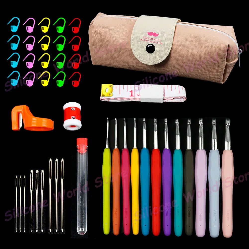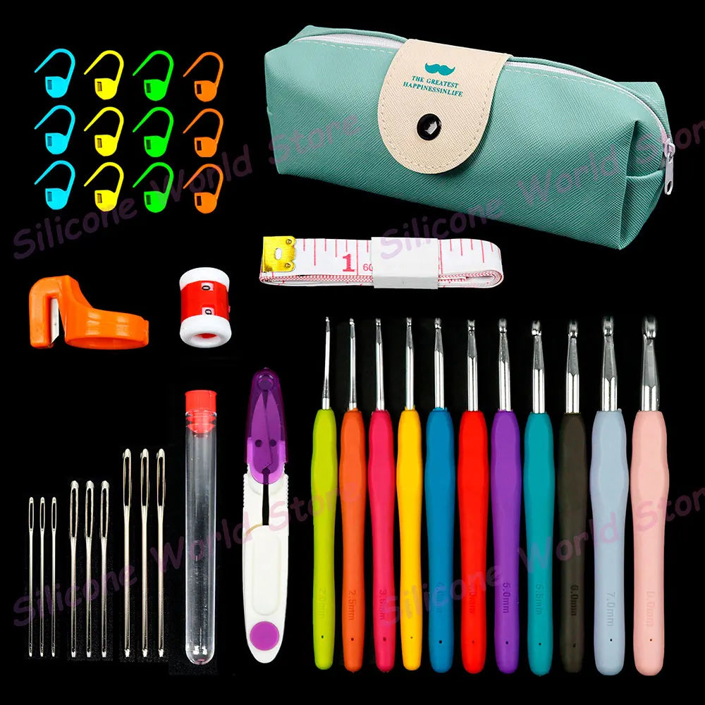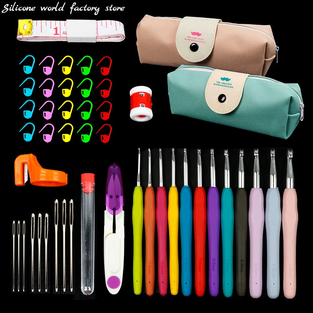 Buntes Häkeln und Stricken Werkzeug Set mit Aufbewahrungstasche