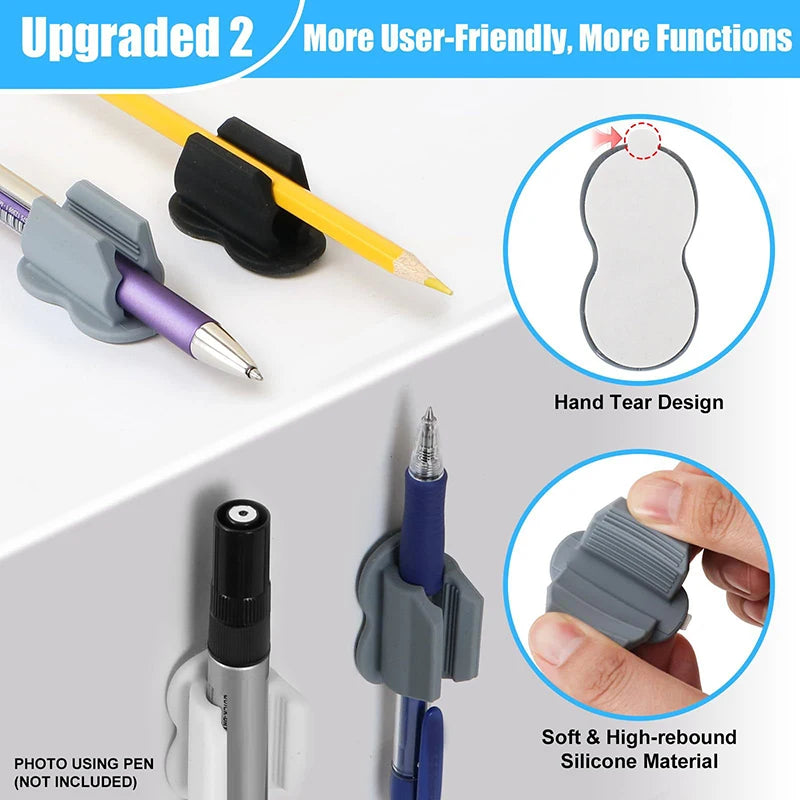 Dieser wiederverwendbare Stifthalter aus flexiblem Silikon sorgt für sicheren Halt von Kugelschreibern, Bleistiften und Markierungsstiften. Die selbstklebende Rückseite ermöglicht einfache Befestigung an Schreibtisch, Wand oder anderen Oberflächen.