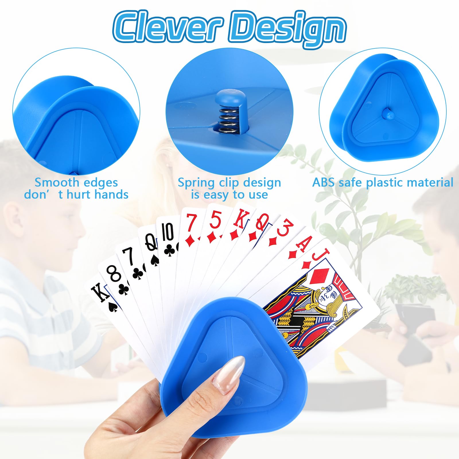 Der praktische Kartenhalter von Sprifityy unterstützt Kinder, Erwachsene und Senioren beim komfortablen Halten von Spielkarten. Dank des robusten Kunststoffs und der handlichen Größe erleichtern die 4 farbenfrohen Halter das Kartenspiel und sorgen für mehr Freude und entspanntes Spielen.