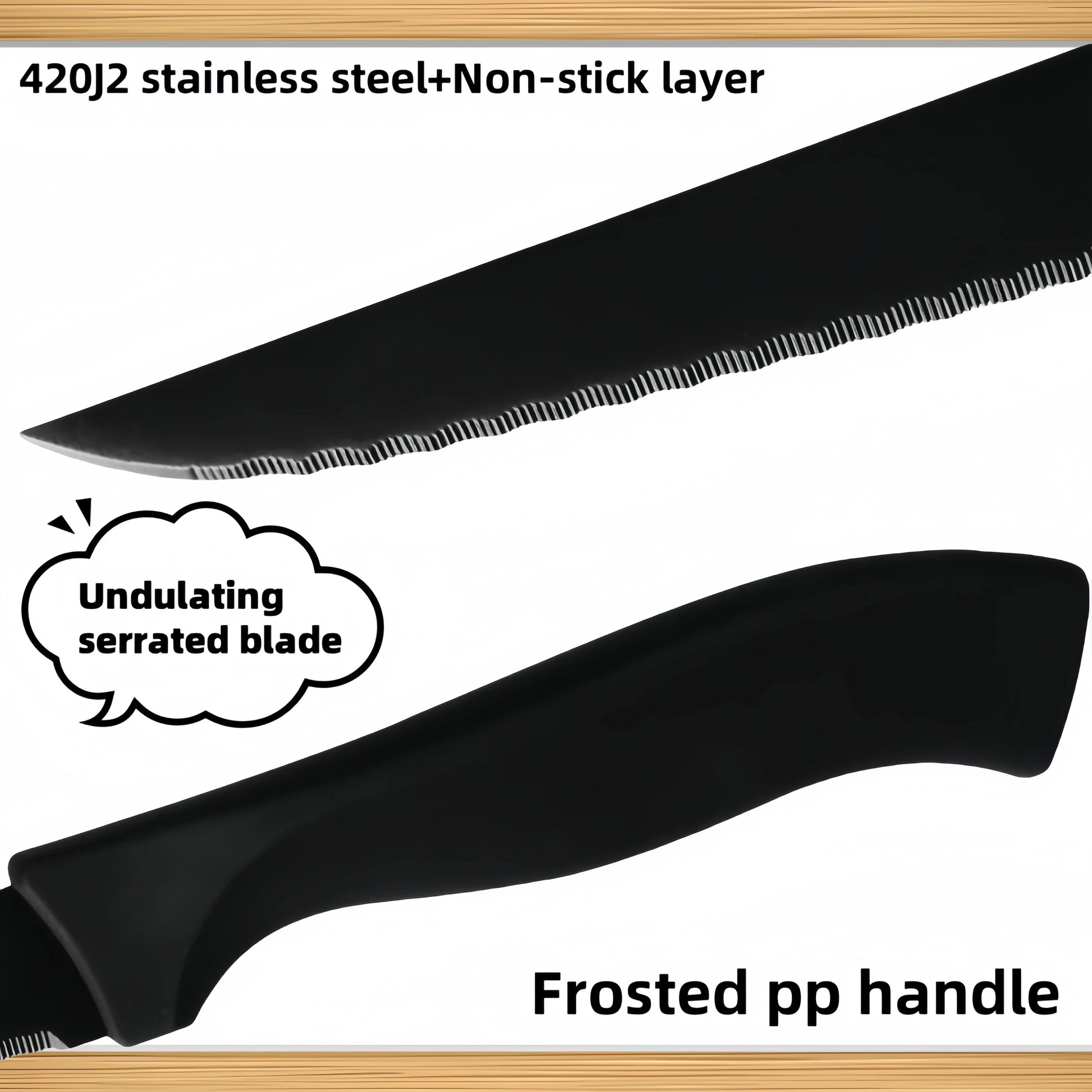 - Gezahnte und antihaftbeschichtete Klingen – erleichtern das Schneiden und verhindern das Anhaften von Fleischresten.