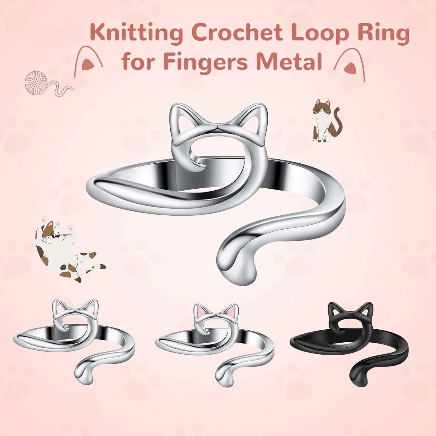 Verstellbarer Häkelspannung Katzenring – Garnführung für Stricker & Anfänger