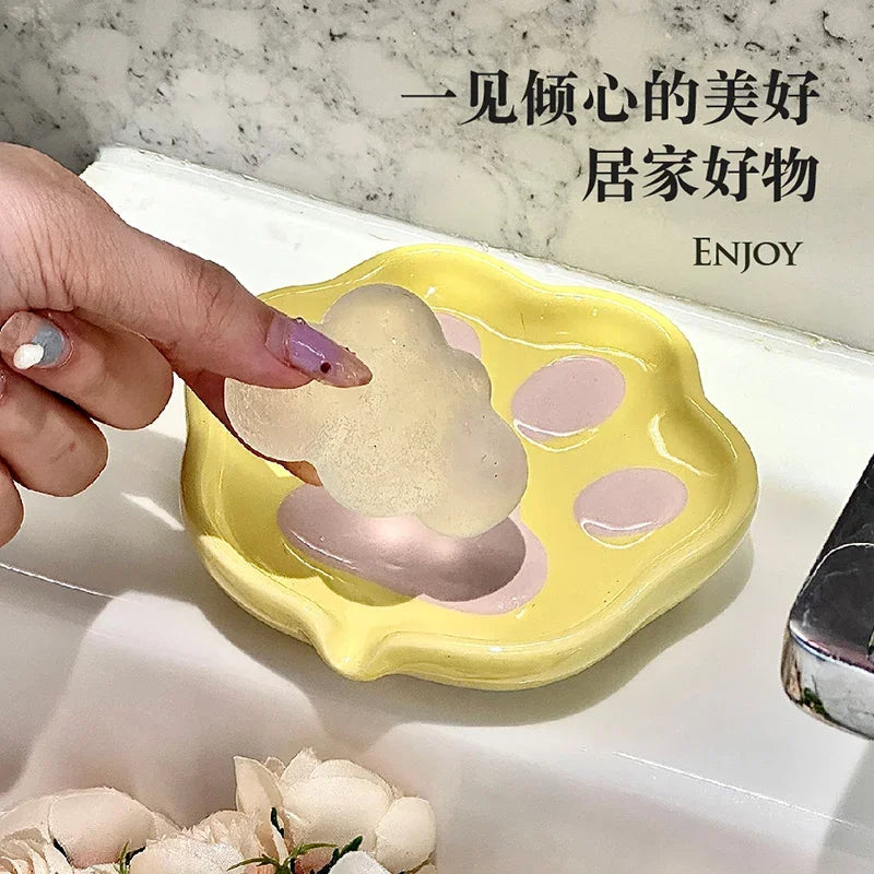 Keramikseifenspender mit Katzenpfoten Motiv für Dusche und Bad