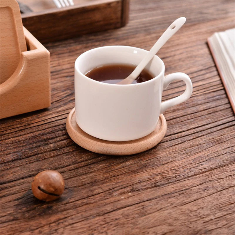 Diese umweltfreundlichen Untersetzer aus Holz schützen Oberflächen vor Feuchtigkeit und Hitze. Perfekt für Tassen, Gläser oder Becher in Haus und Büro.