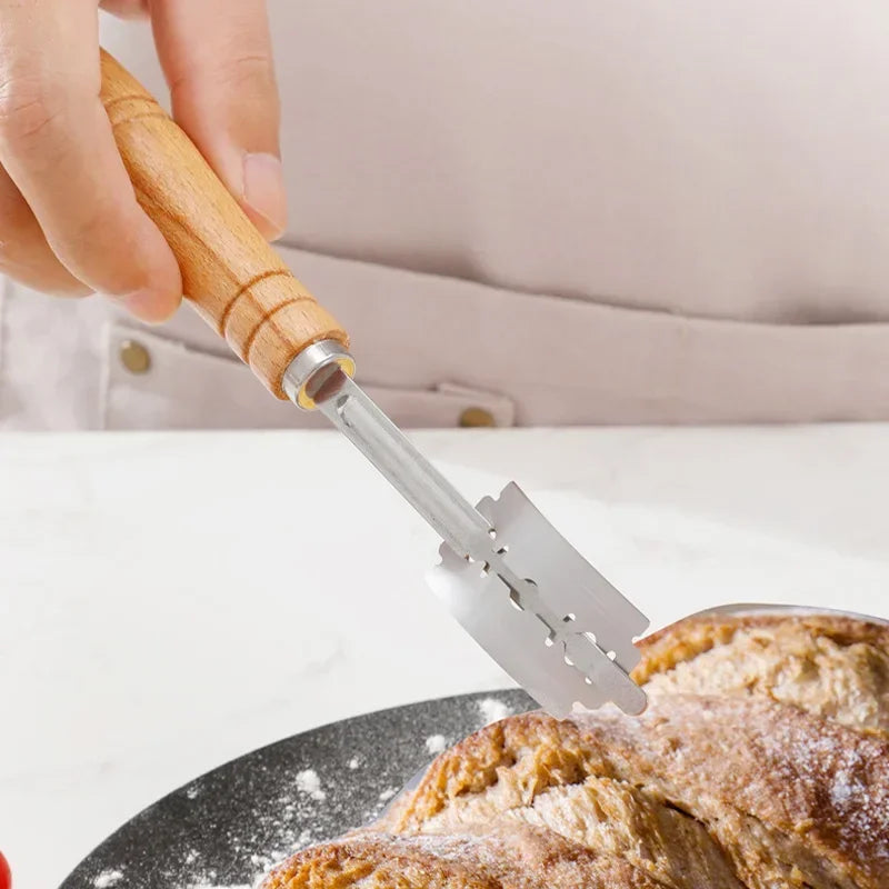 Edelstahl Teigschneider für Brot - Gebäck – 5 Klingen, Holzgriff