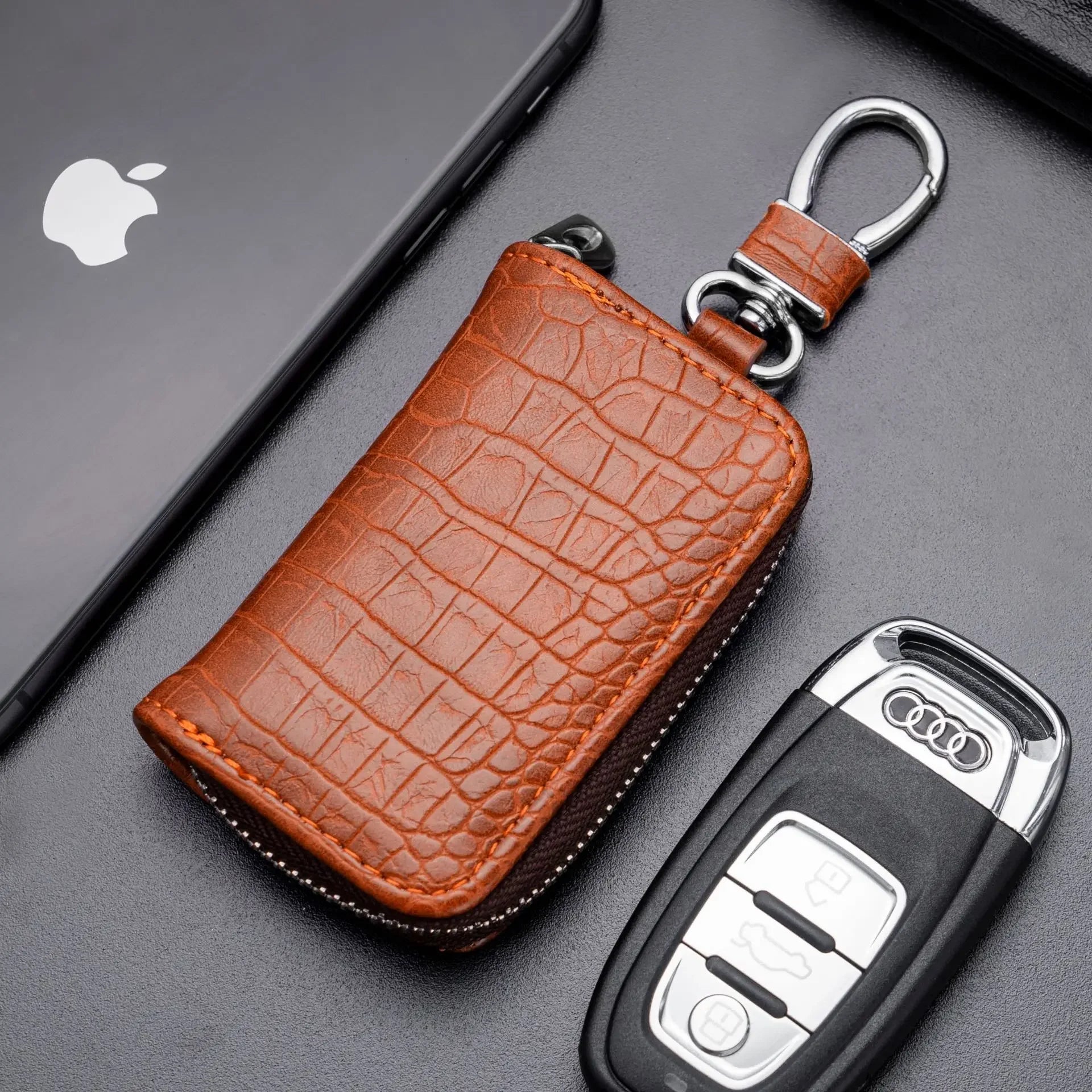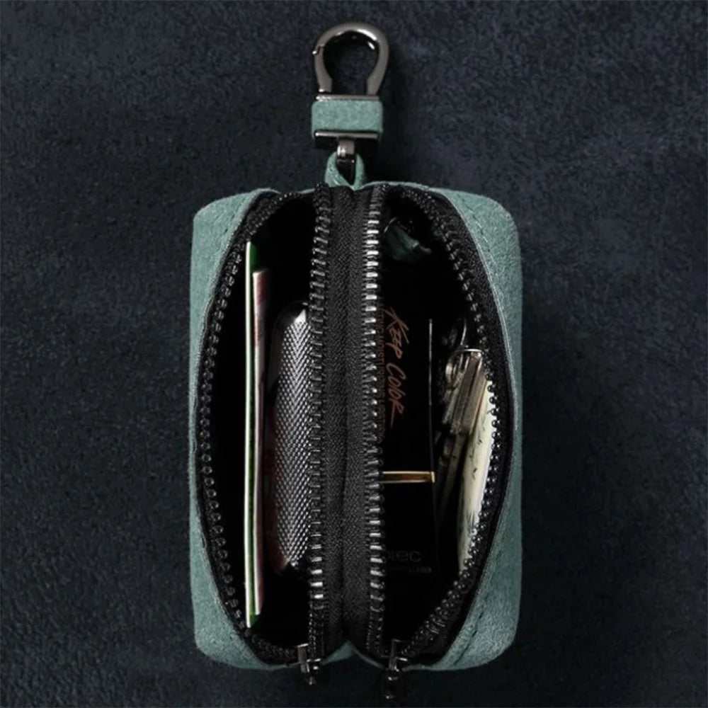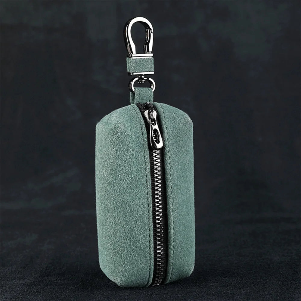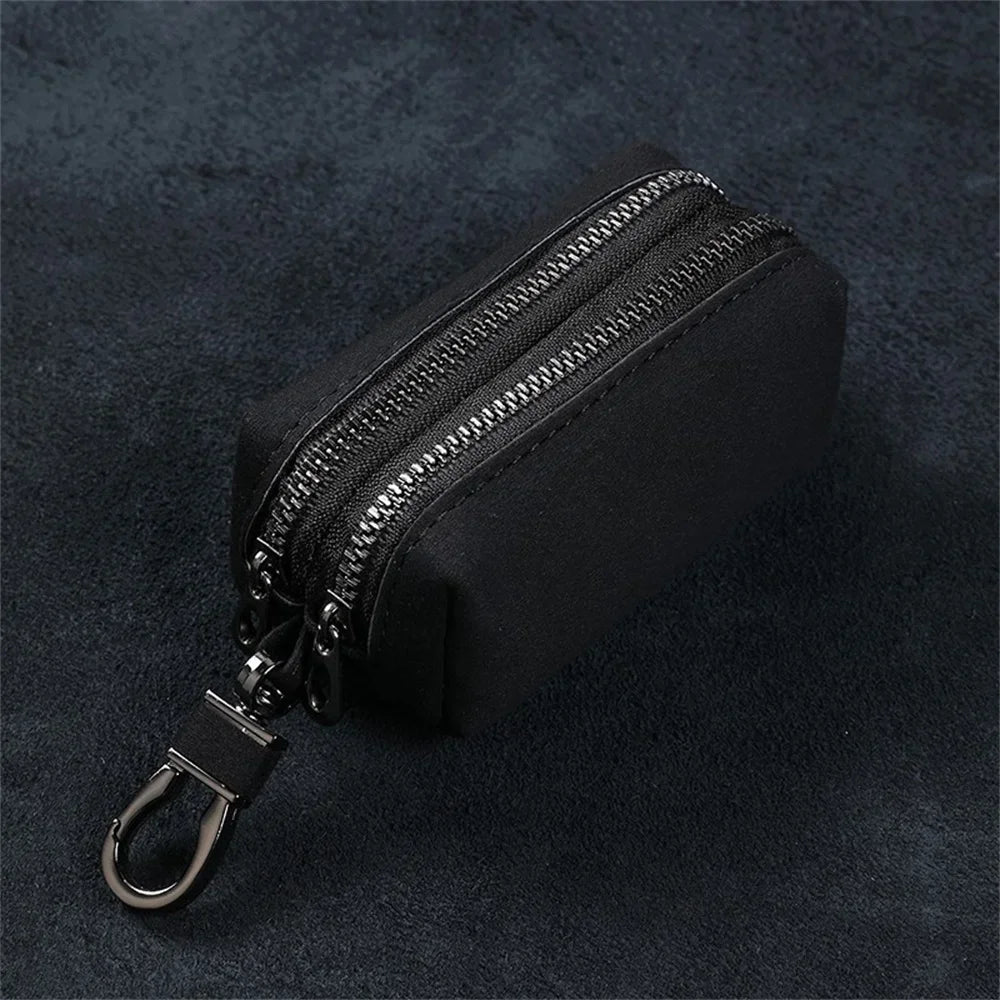 Unisex Wildleder Schlüsselmäppchen für Herren - Damen – Doppel Reißverschluss