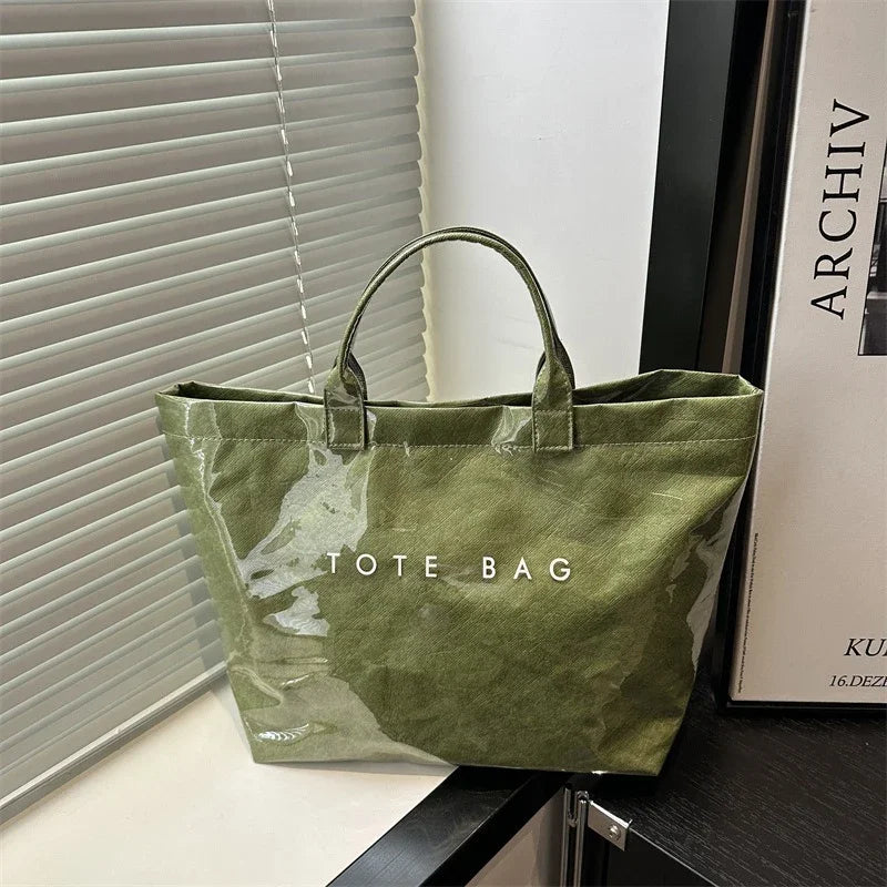 Transparente Einkaufstasche mit Retro Buchstaben großes Fassungsvermögen Damen