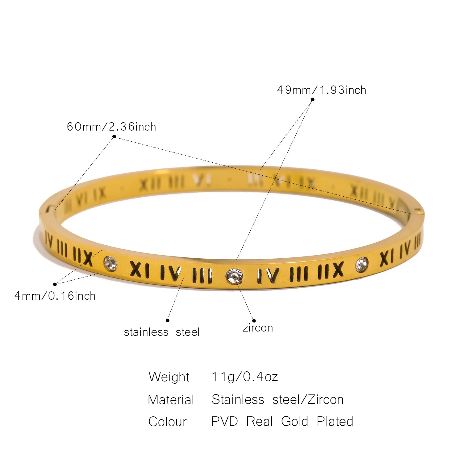 - Einzigartiges Design: Das filigrane hohle Muster, kombiniert mit glitzernden Zirkonen und eleganten römischen Ziffern, schafft ein Schmuckstück von besonderer Anziehungskraft.
