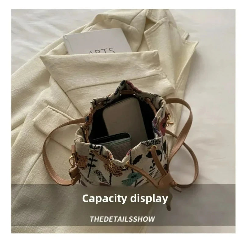 Vintage Umhängetasche mit Blumenmuster für Damen – Softes Kunstleder
