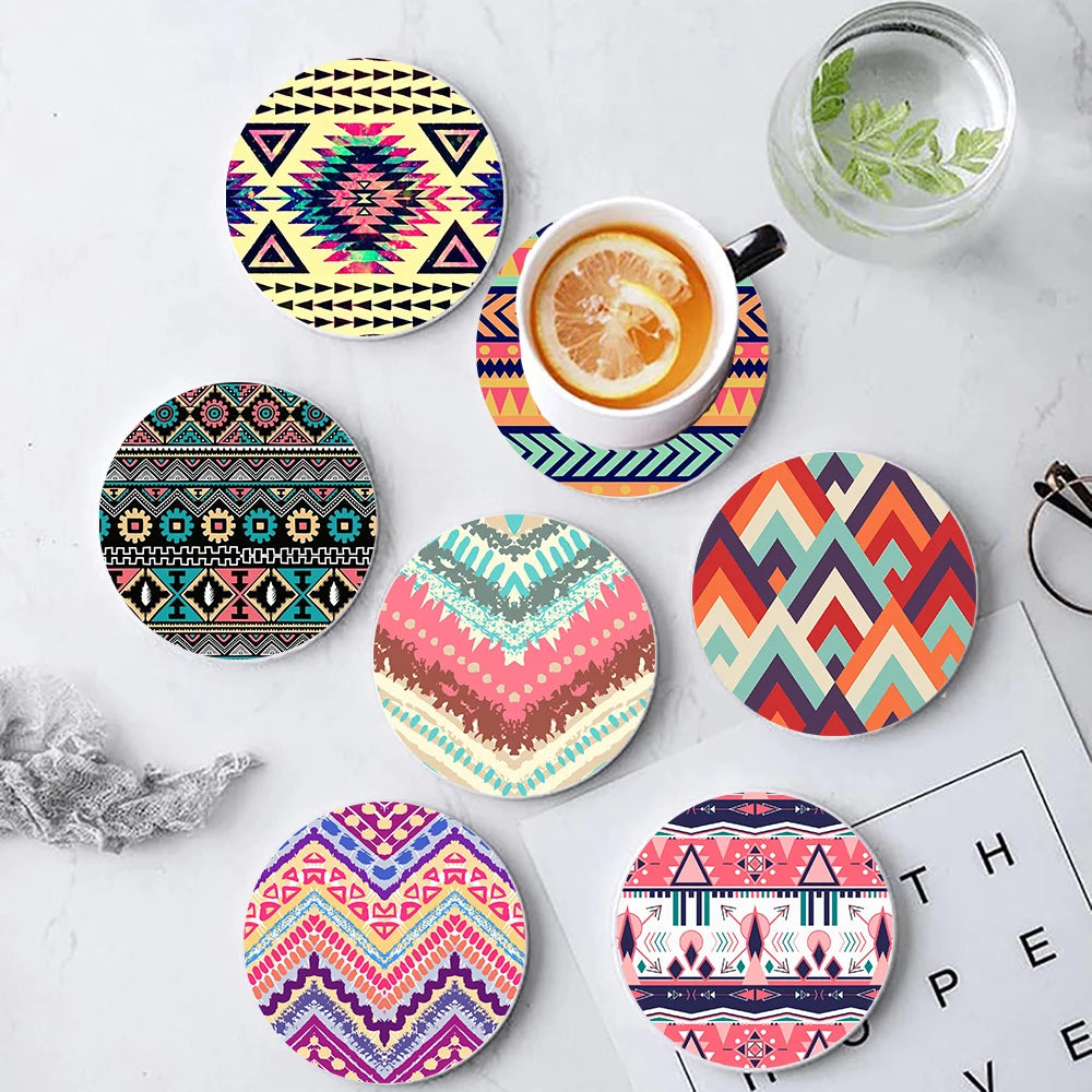 Runde Keramik Untersetzer Böhmischer Stil mit Kork Basis 6er Set
