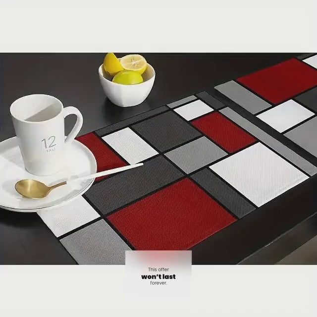 Diese geometrischen Tischsets in Rot, Weiß und Grau verbinden funktionalen Schutz mit elegantem Design. Perfekt geeignet für den täglichen Einsatz im Esszimmer, Wohnzimmer oder in der Gastronomie, sorgen sie für eine gepflegte und moderne Tischdekoration.