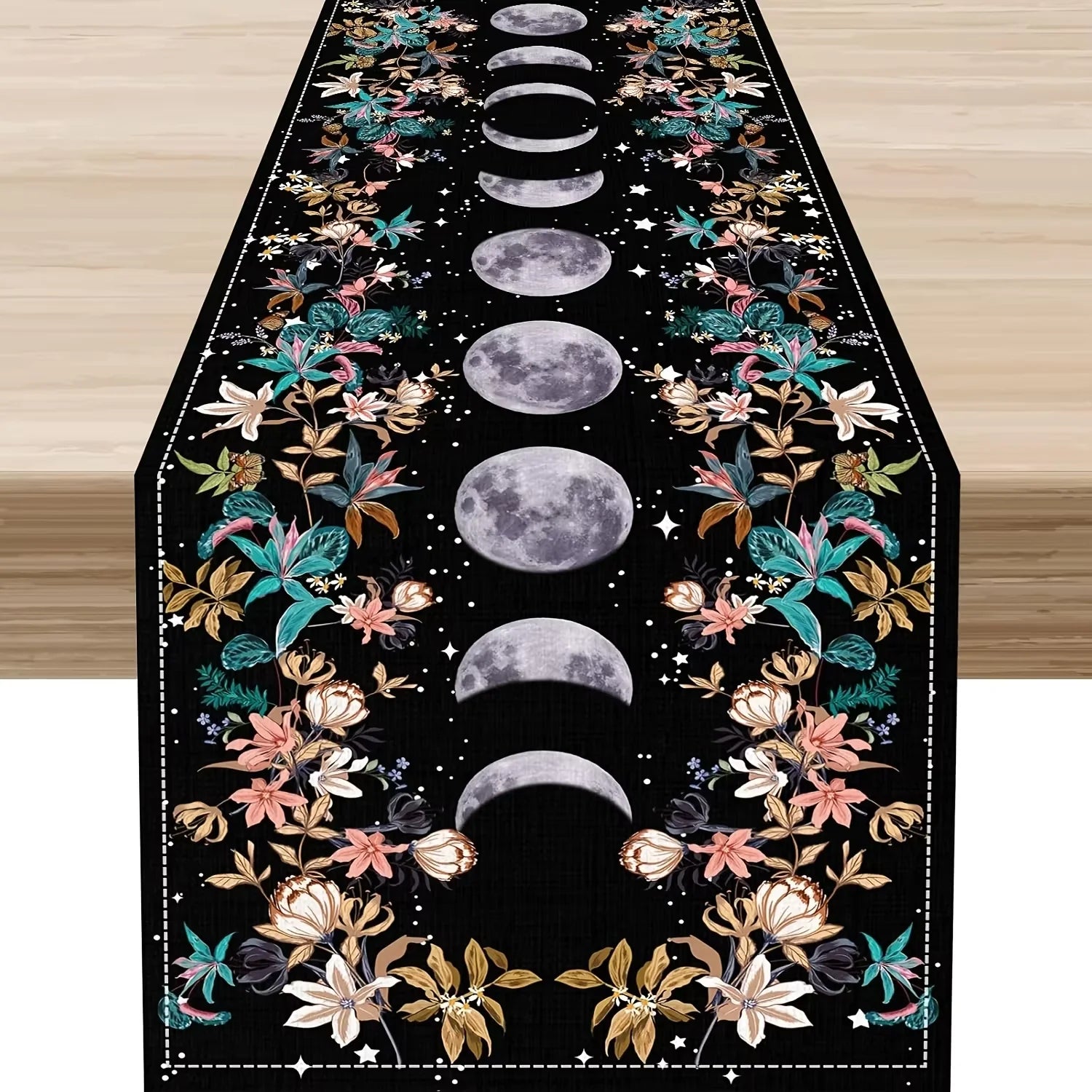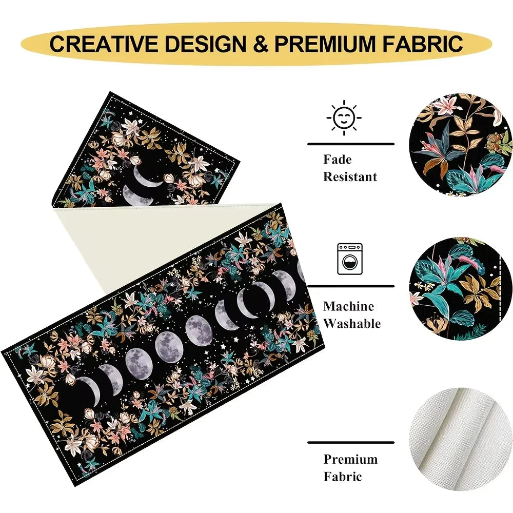 Leinen Tischläufer mit Mondphasen und Blumenmuster für Ihr Zuhause