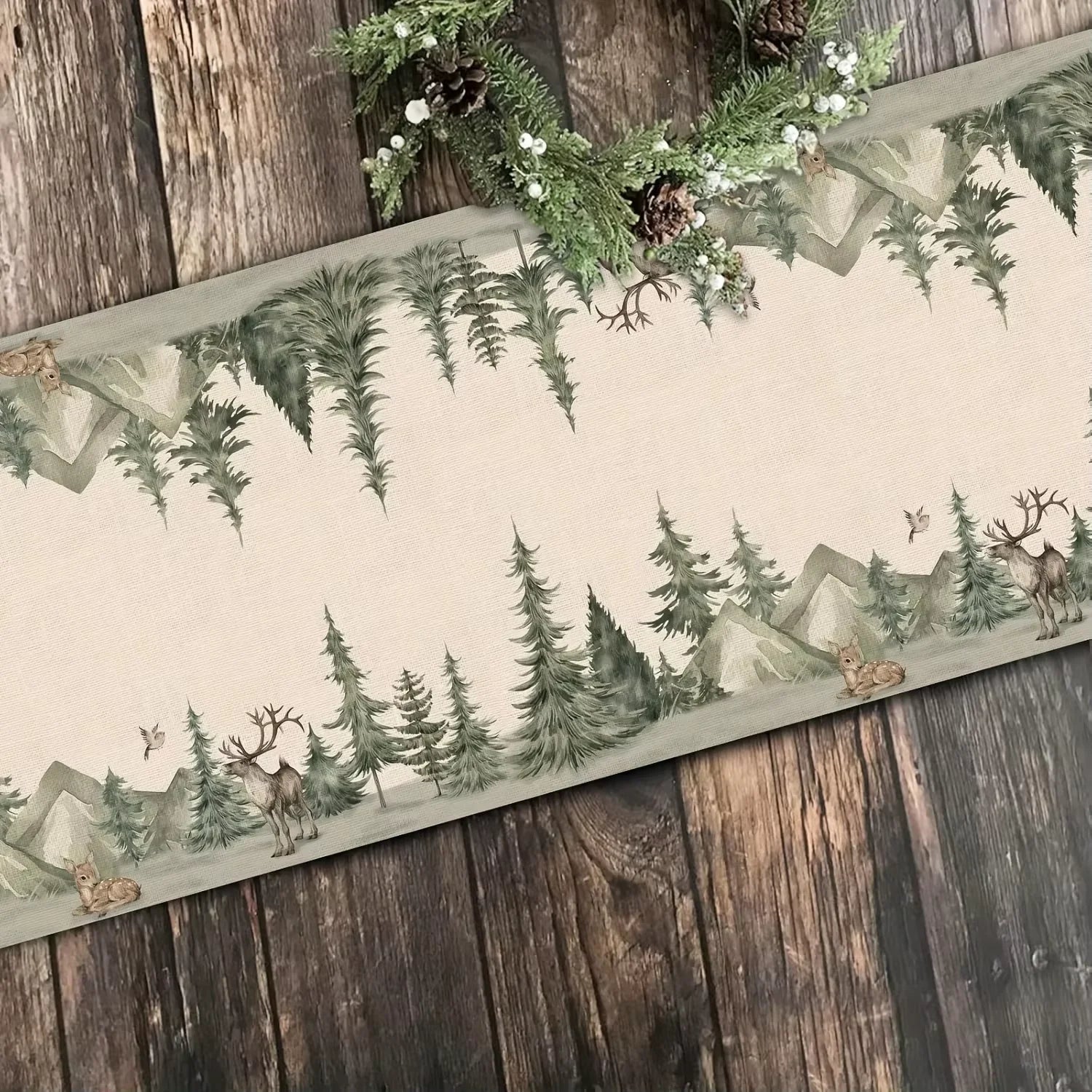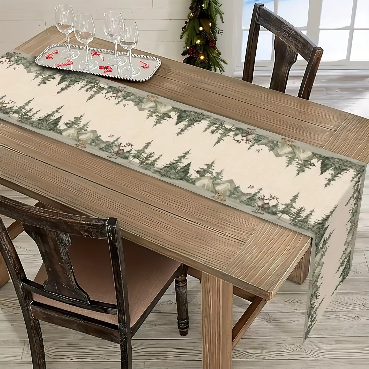 Bringen Sie mit diesem inspirierten Tischläufer aus 100 Prozent Leinen die Atmosphäre eines winterlichen Kiefernwalds in Ihr Zuhause oder Restaurant. Er verleiht jedem festlichen Tisch eine natürliche und langlebige Eleganz.