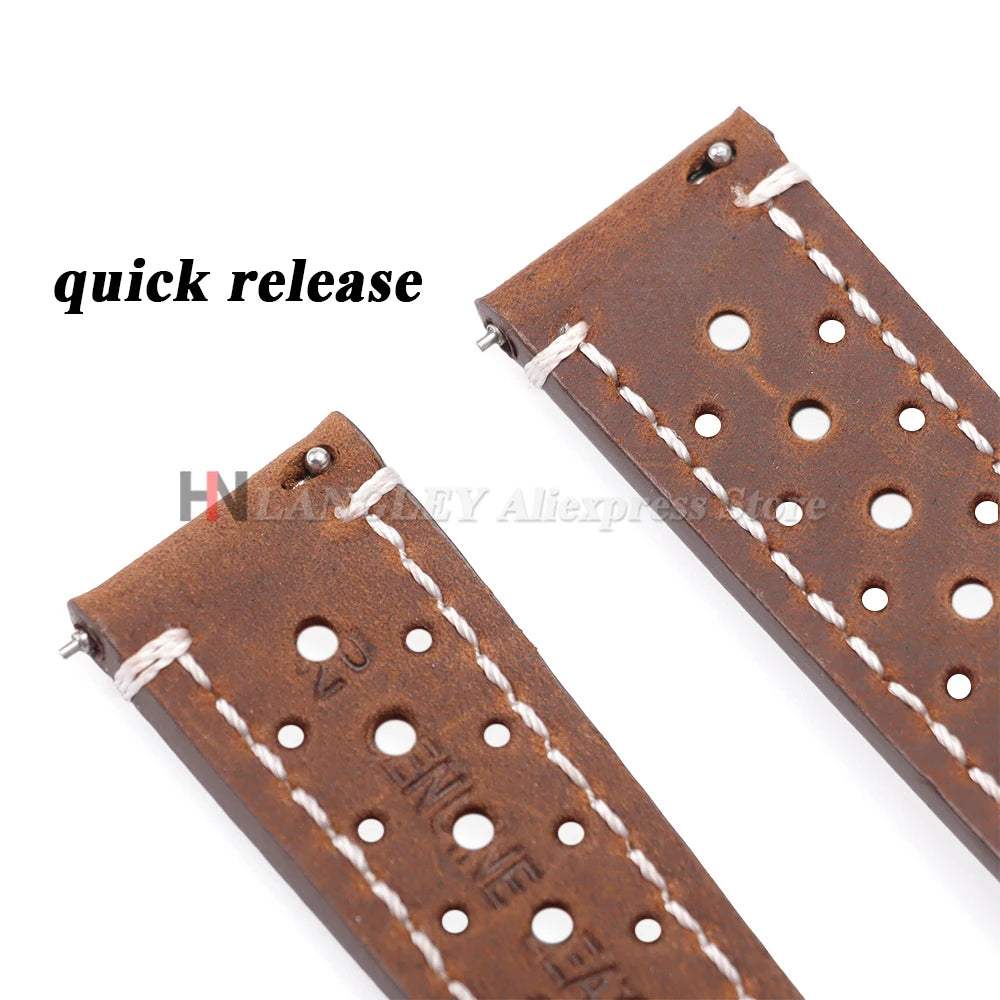 Das Band zeichnet sich durch seine sorgfältige handwerkliche Fertigung aus Leder aus, die eine langlebige und angenehme Nutzung unterstützt. Die poröse Struktur sorgt für eine gute Luftzirkulation, wodurch das Tragegefühl besonders angenehm ist. Eine Racing-Optik verleiht dem Armband einen zeitlosen Charakter ohne modische Übertreibungen.