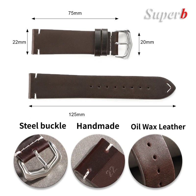 Vintage Ölwachs Lederarmband 18-24mm für Uhr und Smartwatch – Herren Damen