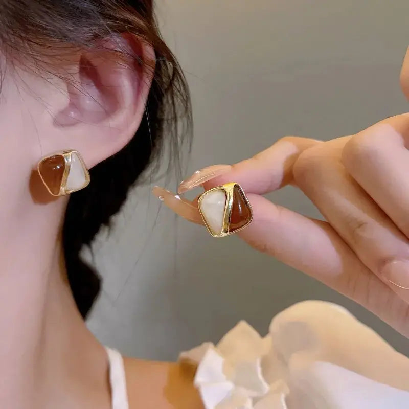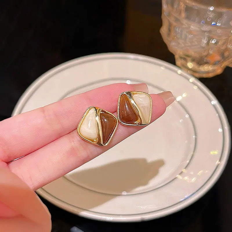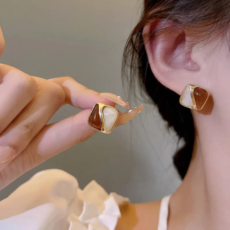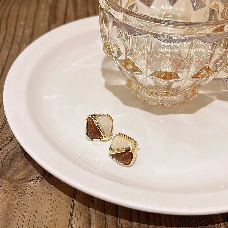 Vintage Quadratische Harz Ohrstecker in Weiß und Kaffee für Damen