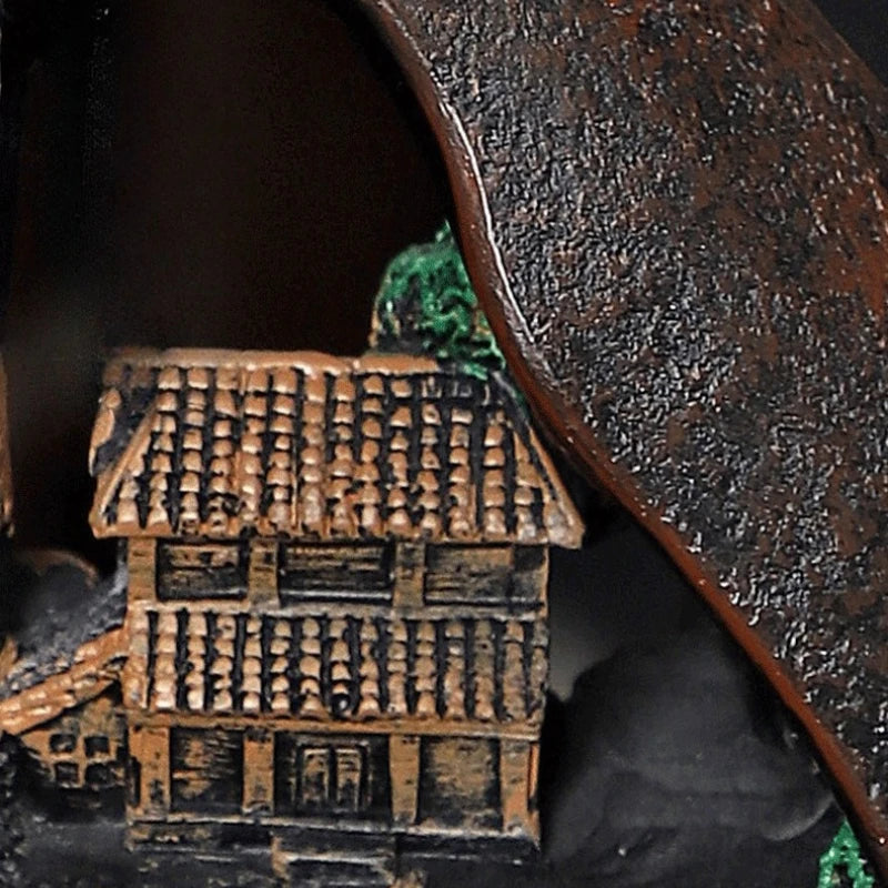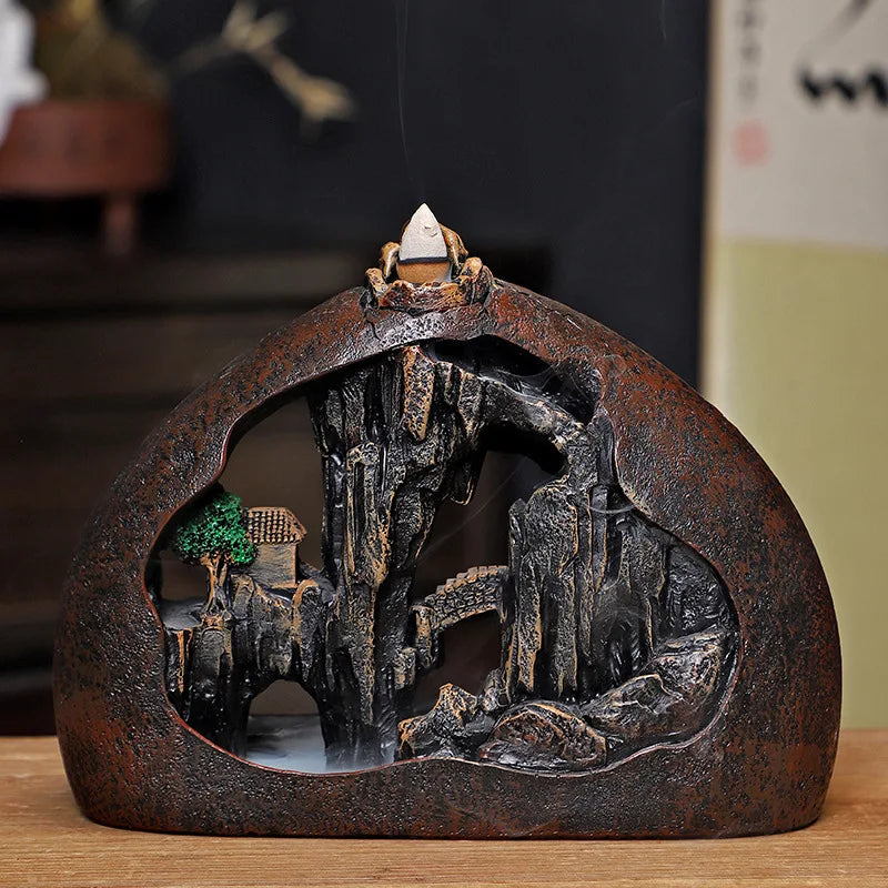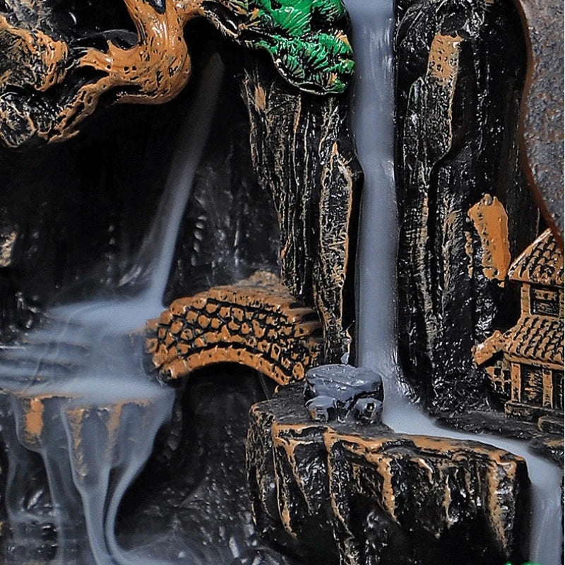 Der Weihrauchbrenner eignet sich ideal, um in Ihrem Wohnzimmer eine beruhigende und meditative Stimmung zu erzeugen. Seine elegante Gestaltung mit Zen-ähnlicher Landschaftsoptik bringt Harmonie und Stil in Ihre Räume. Dieses Produkt besticht durch sein Design aus Polyresin und Resin, hergestellt in China.