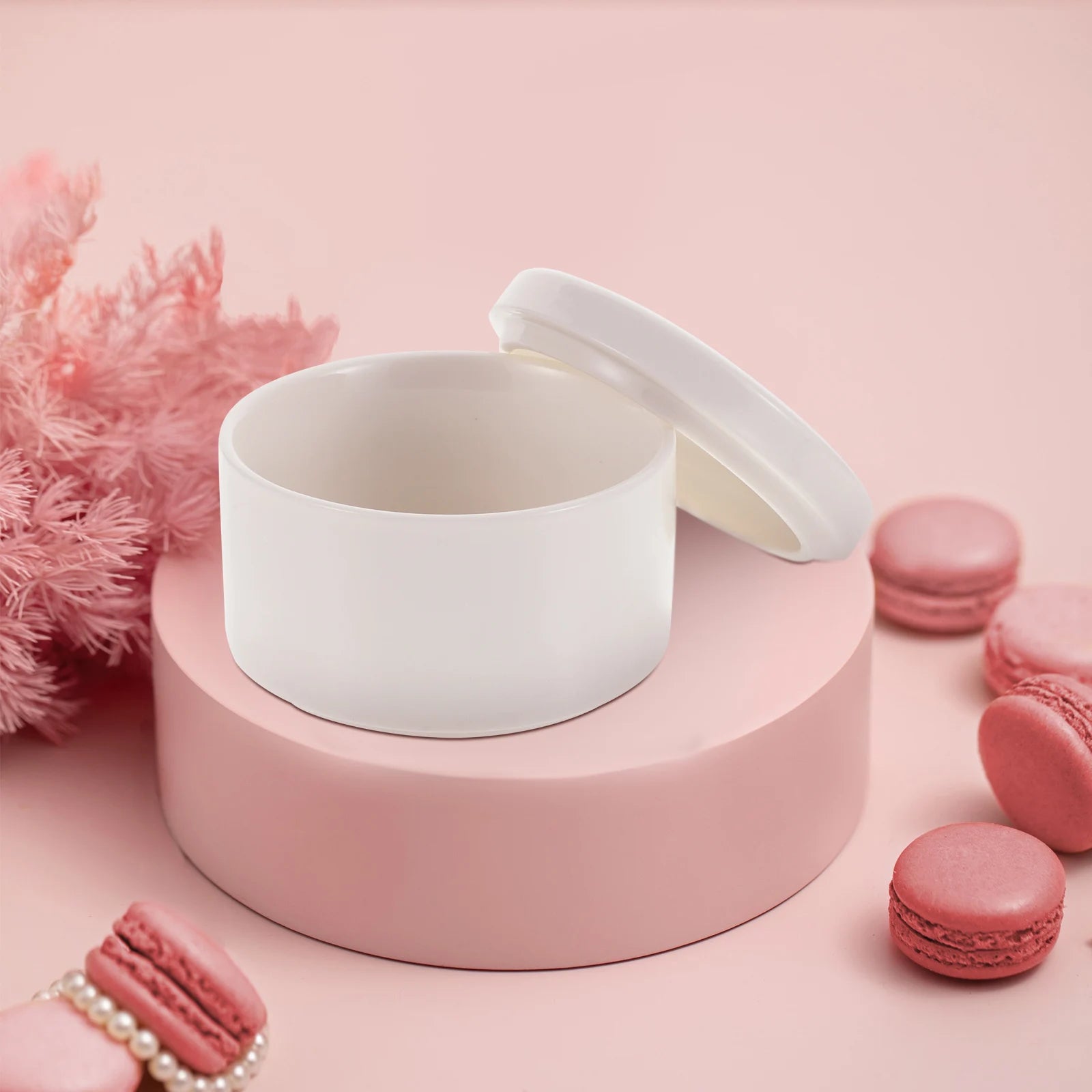 Bewahren Sie Ihre Ringe, Ohrringe und Armbänder stilvoll und übersichtlich auf. Diese runde Schmuckschatulle aus weißem Porzellan sorgt für eine ansprechende Präsentation und schützt Ihre Schmuckstücke effektiv. Das Produkt besticht durch sein Design aus China.