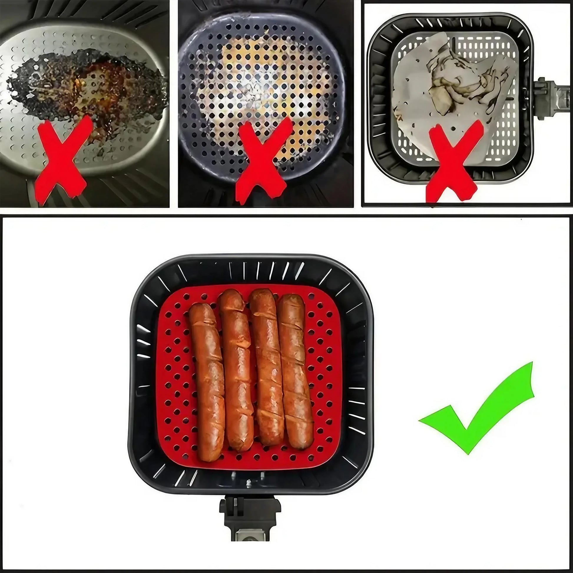 Diese vielseitige Silikonmatte schützt Ihre Heißluftfritteuse und sorgt für ein gleichmäßiges, fettarmes Garen. Sie sparen Kosten durch Verzicht auf Einwegprodukte und profitieren von einfacher Reinigung.