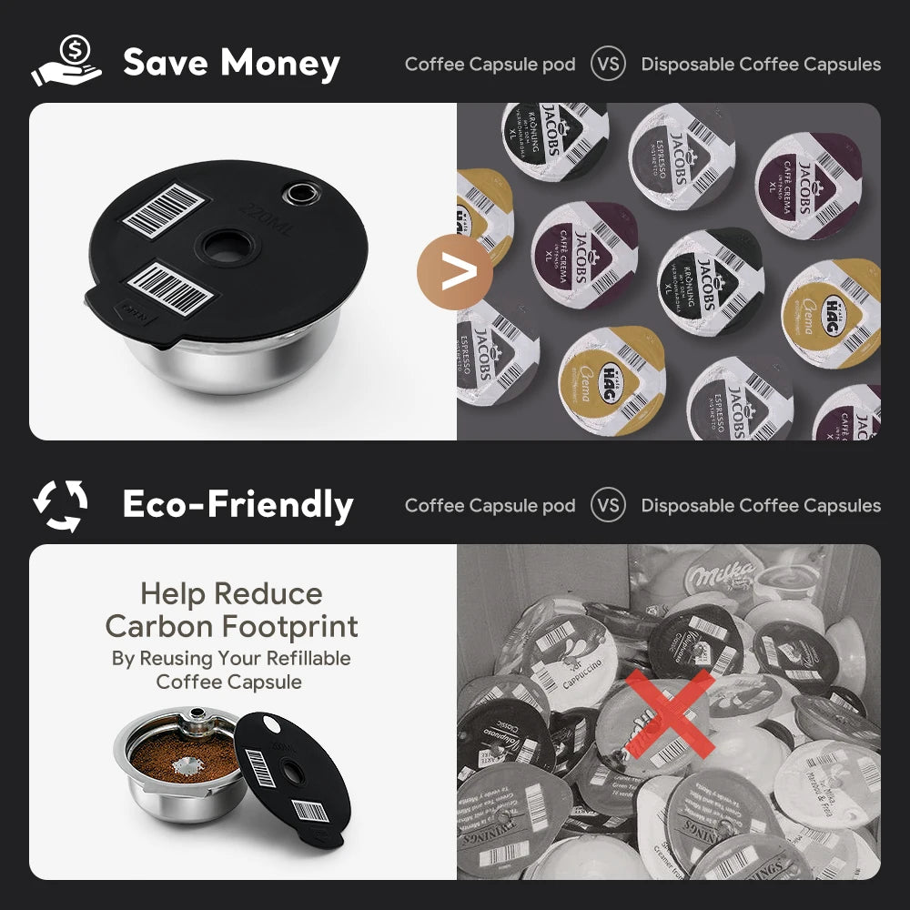 Diese wiederverwendbare Kaffeekapsel aus hochwertigem Edelstahl ist speziell geeignet für Bosch Tassimo Modelle wie SUNY, HAPPY, VIVY sowie weitere TAS-Serien. Sparen Sie Ressourcen und genießen Sie gleichzeitig intensiven Espresso-Genuss ohne Einwegabfälle.