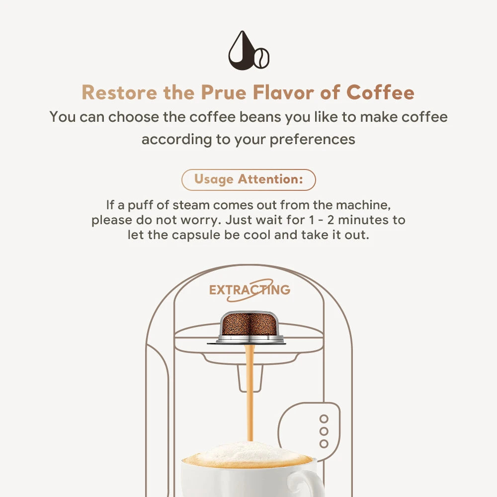 Für besten Geschmack empfehlen wir, die Kapsel nach jeder Benutzung gründlich zu reinigen und den Silikondeckel korrekt zu verschließen. Nutzen Sie frisches, fein gemahlenes Espressopulver für ein intensives Aroma. Die wiederverwendbare Kaffeekapsel integriert sich ideal in nachhaltige Haushalte, da sie Abfall reduziert und langfristig Kosten spart. Bei Unsicherheiten bezüglich der Kompatibilität wenden Sie sich gerne an den Kundenservice.