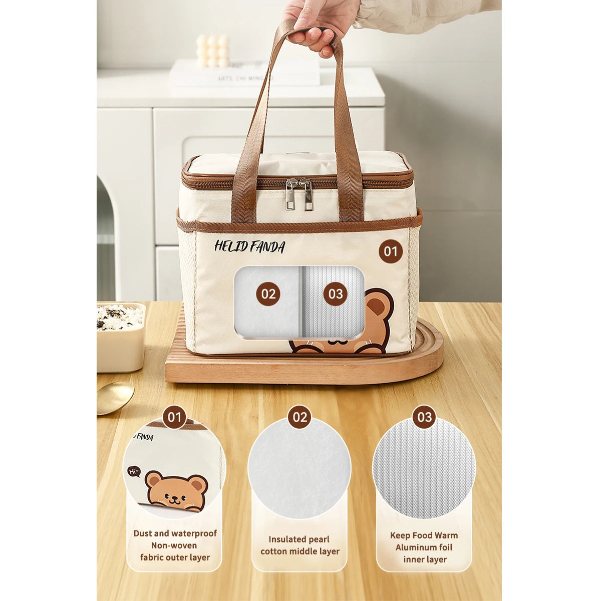 - Vielseitige Einsatzmöglichkeiten: Perfekt als Lunch-Tasche, Picknick-Tasche, Camping-Kühltasche oder zur allgemeinen Lebensmittelaufbewahrung.