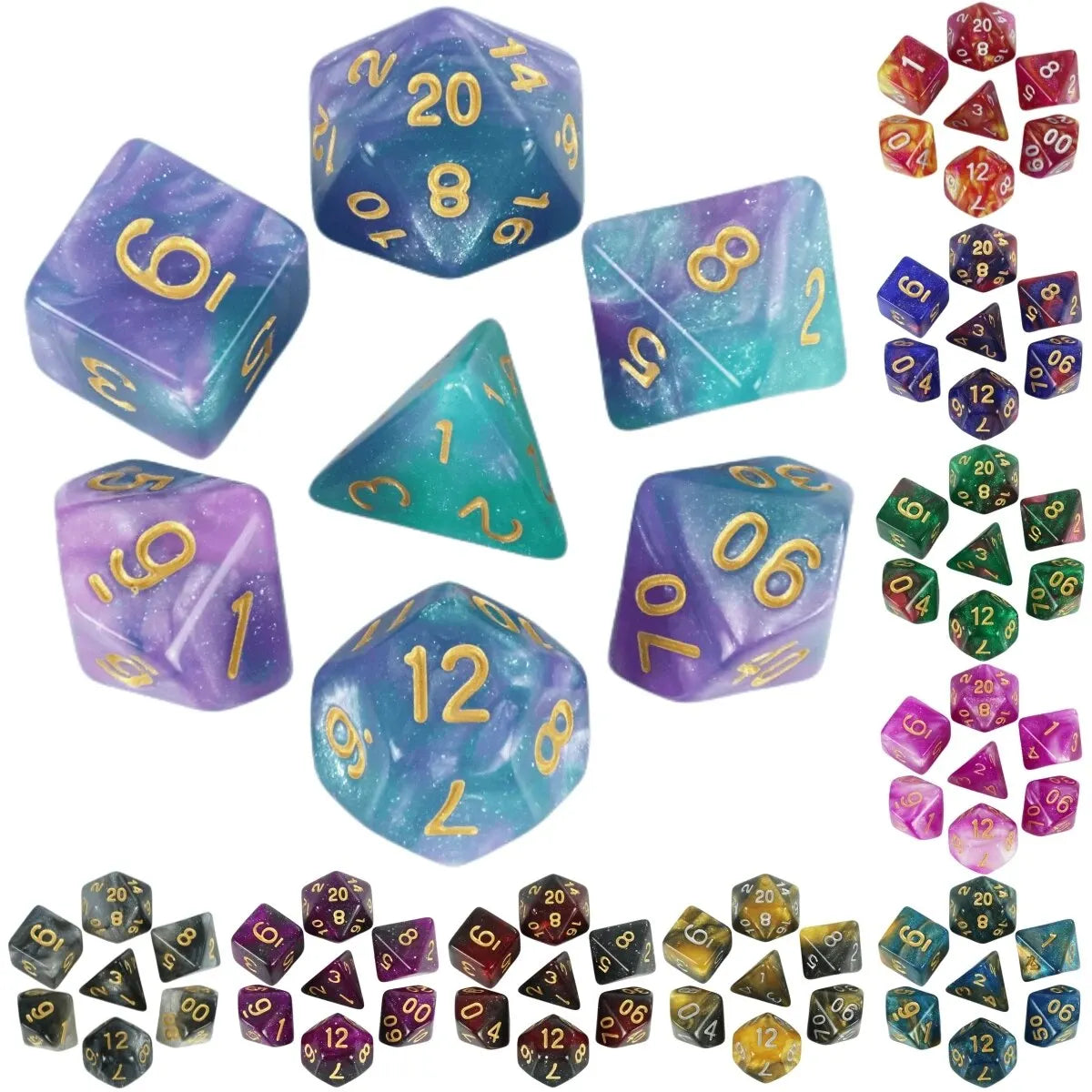 Polyedrisches Würfelset mit Galaxie Design für fesselnde Brettspiele