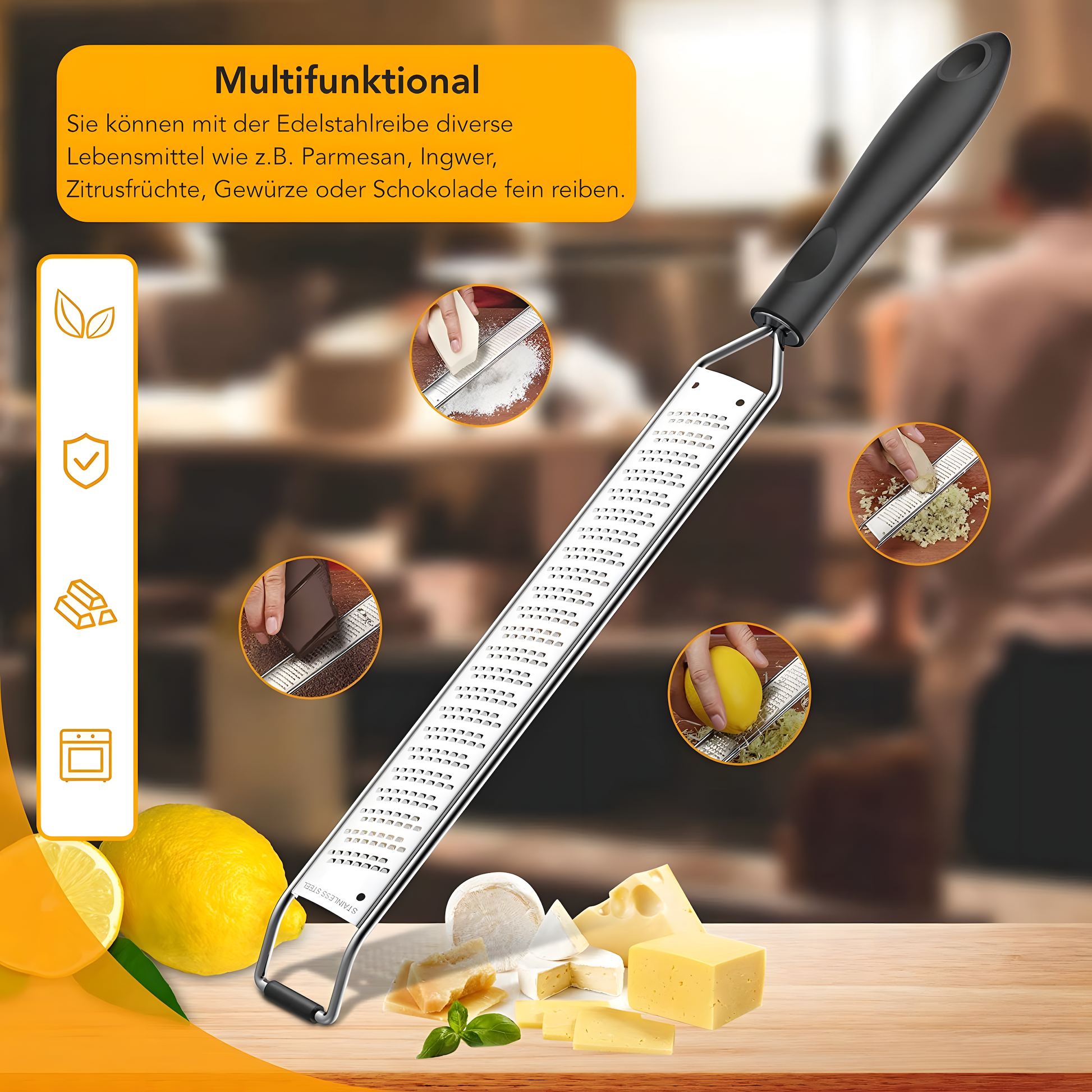 Zester Reibe aus Edelstahl Handreibe mit Schutzabdeckung