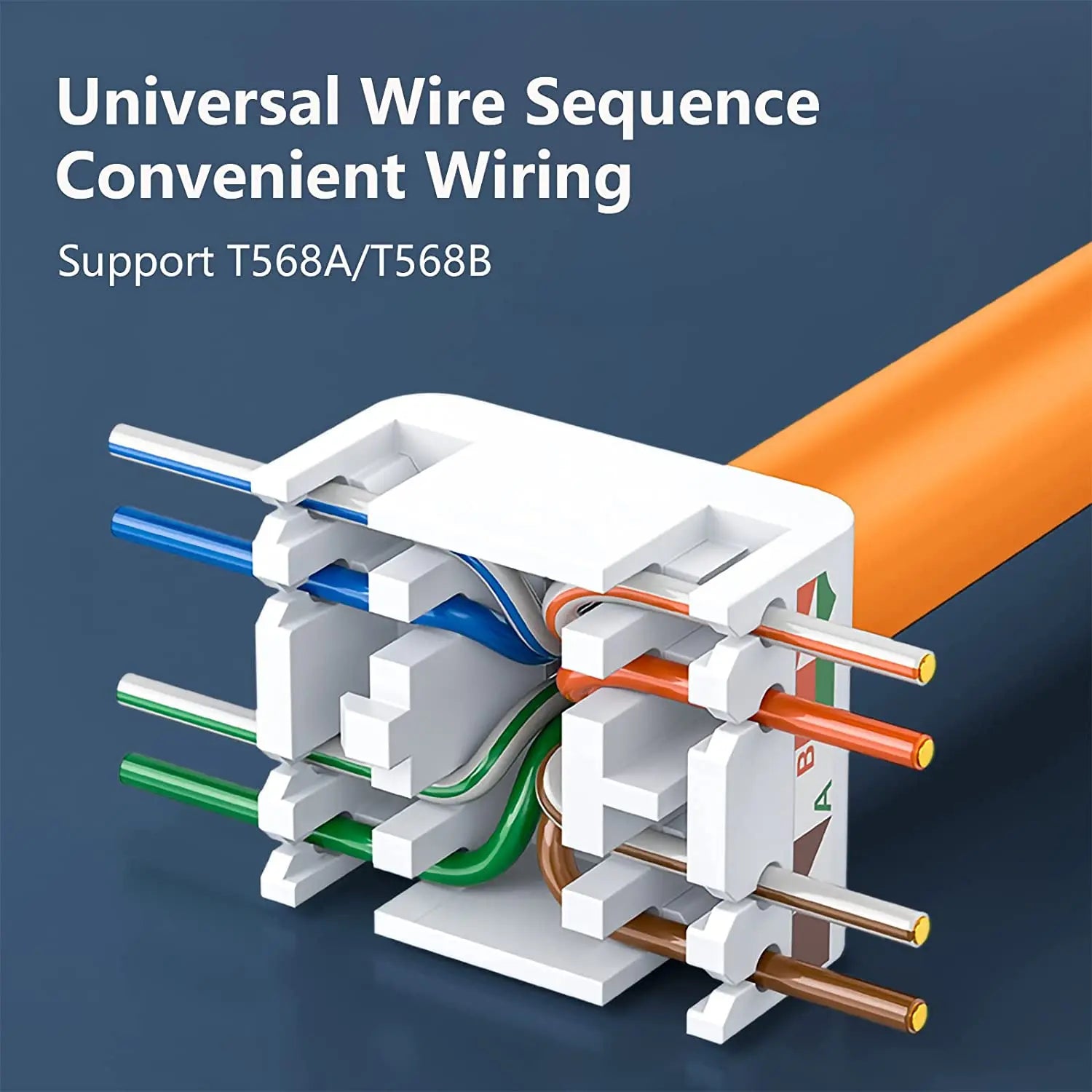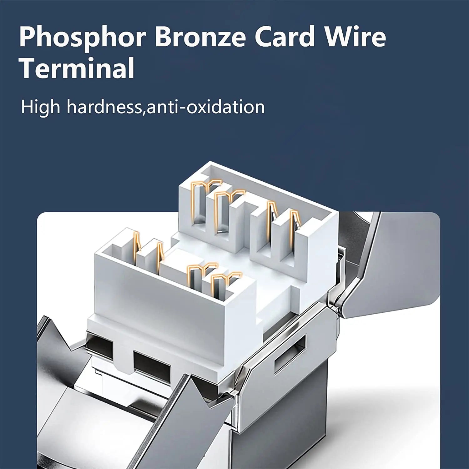 Dieses hochwertige RJ45 STP werkzeuglose Modul aus Zinklegierung ist ideal für eine stabile und schnelle Netzwerkverbindung. Geeignet für Cat8, Cat7 und Cat6A Anwendungen, unterstützt es LAN-Datenraten bis zu 1000 Mbps und bietet eine effektive Abschirmung gegen Störungen.